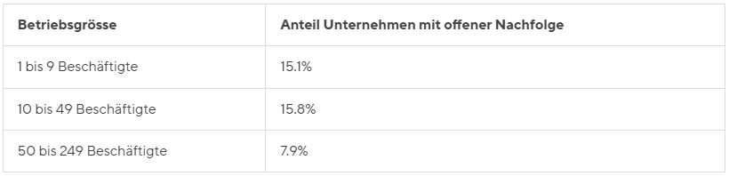 Offene Nachfolgen nach Firmengrösse